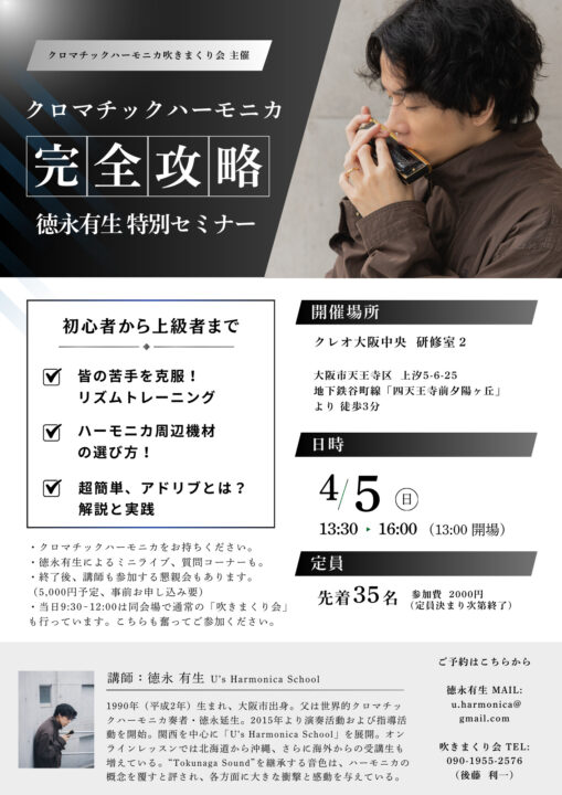 クロマチックハーモニカ完全攻略セミナーを開催いたします。